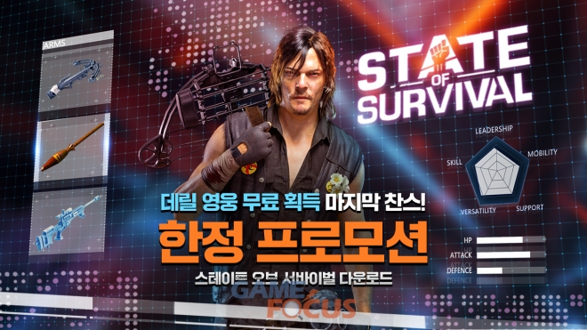 한편, 워킹데드와의 컬래버레이션 프로모션 2탄 워킹데드 홍보 영상 SNS 공유 이벤트와 관련한 자세한 내용 및 커뮤니티는 ‘S.O.S:스테이트 오브 서바이벌 공식 카페'에서 확인할 수 있다.