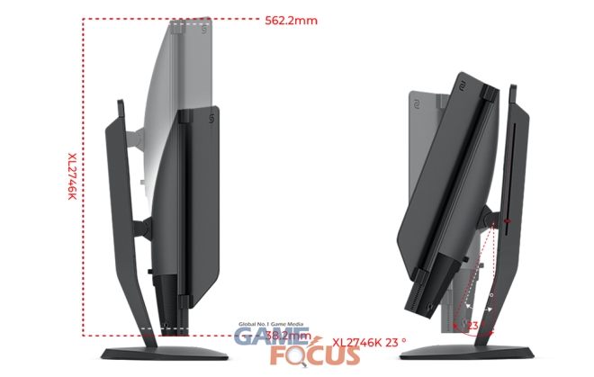 아울러 전작 XL2746S 대비 더 넓은 폭으로 최대 23도 지원되는 틸트, 최대 155mm까지 높낮이 조절이 가능한 멀티 스탠드가 장착되었으며, 눈금을 표기하여 사용자들이 한 치의 오차 없이 취향에 맞게 조절할 수 있다. 모니터 받침대 역시 주변기기의 방해를 최소화하면서 스크린의 안정을 유지하는 XL-K 시리즈의 받침대 디자인을 적용하여 사용자들에게 편안한 환경을 제공한다.