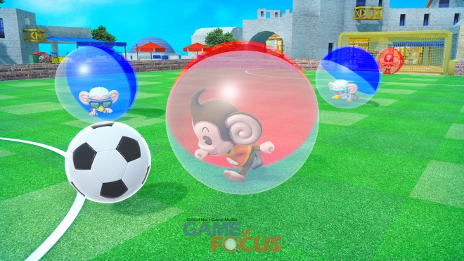 볼 안의 원숭이를 움직여서 즐기는 풋살!