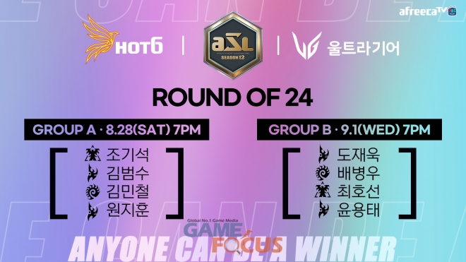 ‘ASL 시즌12’는 24강을 통해 가려진 12명과 시드권자인 변현제(P), 조일장(Z), 김명운(Z), 유영진(T) 4명이 합류해 9월 15일(수) 조 지명식을 진행한다. 본선 16강전은 9월 26일(일)부터 시작될 예정이다.