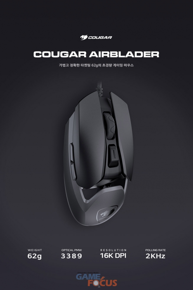 브라보텍에서 쿠거코리아와 함께 탁월한 게이밍 퍼포먼스에 62g의 초경량으로 최상의 사용자 경험을 제공하는 AIRBLADER 게이밍 마우스를 출시한다.