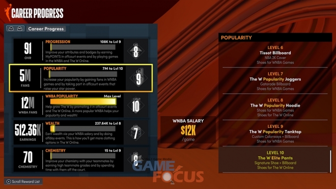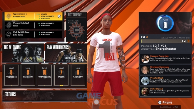 이와 함께 The W 온라인에서는 2K 커뮤니티와 연결되어 매치 메이킹 전 친구와 함께 팀을 맺고 코트에 오를 수 있으며 이를 통해 시즌 XP를 얻고 레벨을 높여 새로운 보상을 획득할 수 있다.