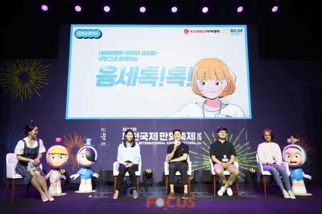 이날 웹툰 쇼케이스의 주인공인 <유미의 세포들>에 대한 이야기도 이뤄졌다. 작품이 많은 독자들의 사랑을 받게 된 이유에 대해서는 패널 모두 ‘공감’이라고 입을 모았다.
