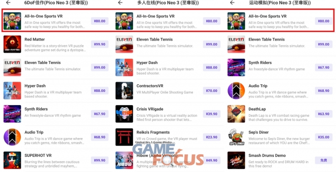 앱노리는 자사의 스포츠 VR 게임 '올인원 스포츠 VR'이 중국 피코 스토어에서 9월 8일 기준 멀티플레이, 6Dof, 스포츠 등 3개의 카테고리와 전체 인기 판매 순위에서 1위를 달성했다고 8일 밝혔다.