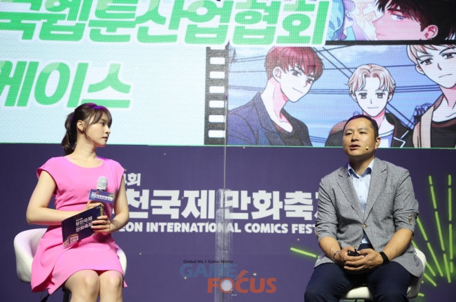 한국웹툰산업협회를 대표해 발표자로 나선 김태원 (주)북큐브네트웍스 부장은 북큐브네트웍스 '흑막의 어린 후원자', 디씨씨이엔터(주) '악녀가 사랑할 때', '다행인지 불행인지', 만화가족 '사장님은 투 타임', '미래 남편 누구게?', 락킨코리아 '미남 호떡', '신족재판', 툰플러스 '아라치 대륙격멸전', '월요일이 사라졌다', 툰토리 '베이비 드래곤', 유주얼 미디어 '황녀인데 악녀입니다', '파멸의 공주님' 등 총 7개 회원사의 12개 작품을 소개했다.