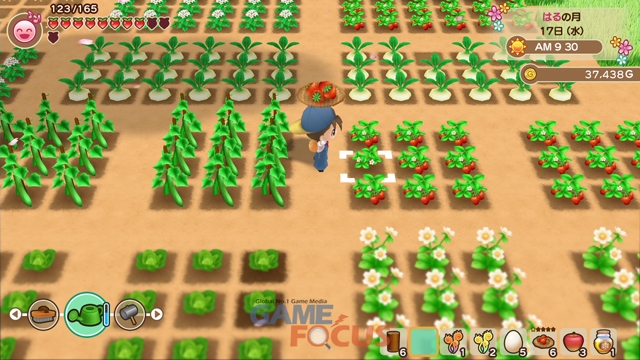 목장 밭에서 채소와 과일을 기를 수 있다. 매일매일 돌봐주고, 성장하면 수확하자. 수확하면 출하해서 돈으로 바꿀 수 있다.