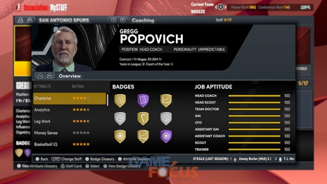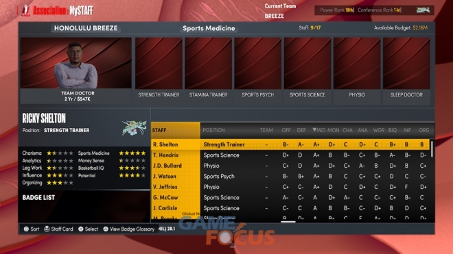 플레이스테이션 5과 엑스박스 시리즈 X|S 콘솔용 NBA 2K22에서 플레이하는 MyNBA는 MySTAFF로 코치 선택부터 스포츠 의학 전문의 영입에 이르기까지 조직을 완전히 관리할 수 있다.