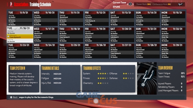 준비 허브 기능에서는 팀 훈련과 피로를 관리함과 동시에 다음 상대의 스타우트 리포트도 확인할 수 있으며, 조건부 코칭은 사용자가 경기를 시뮬레이션하는 동안 코칭 지시를 내리는 데 도움을 준다.