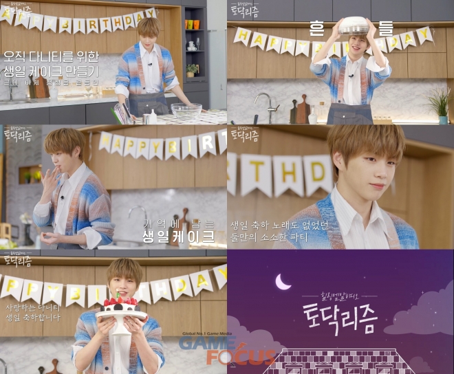 공개된 힐링엠알비디오 '토닥리즘' 1화에서 강다니엘은 다니티(공식 팬클럽명)를 위한 '생일 케이크 만들기'에 도전했다. 강다니엘은 서툴지만 정성을 다해 케이크를 만들며, 생일과 관련된 다양한 TMI를 공개해 팬들의 시선을 사로잡았다.