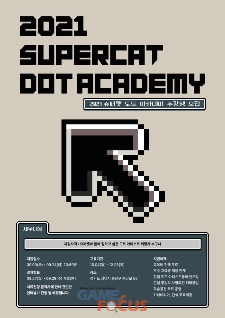 슈퍼캣(대표 김영을)은 미래의 도트 아티스트 육성을 위한 프로그램 '2021 슈퍼캣 도트 아카데미' 참가자를 모집한다.