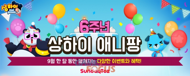 선데이토즈(대표 김정섭)가 자사 모바일 게임 '상하이 애니팡'의 서비스 6주년을 맞아 업데이트와 함께 한 달 동안 다양한 기념 이벤트를 진행한다.
