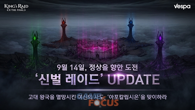 베스파(대표 이완수)가 자사가 개발한 모바일 RPG '킹스레이드'가 최상위 단계의 레이드 콘텐츠 '신벌 레이드'를 업데이트했다.