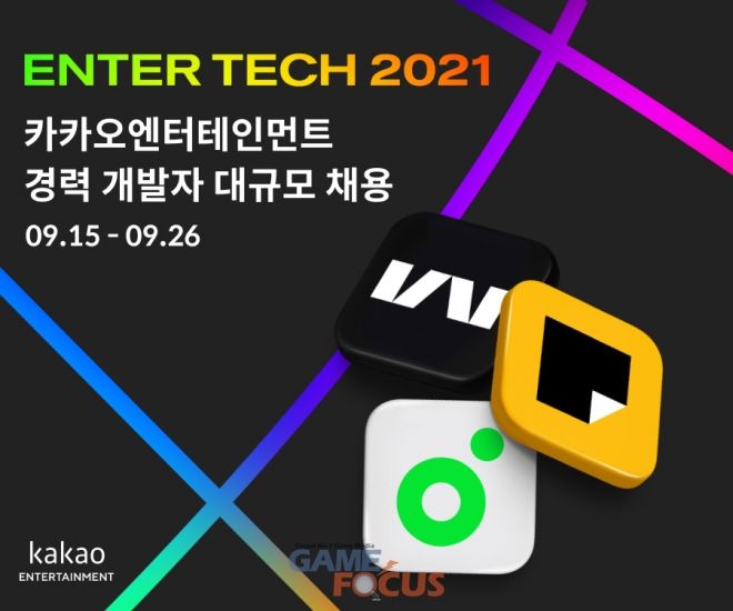 카카오엔터테인먼트(대표 이진수, 김성수/ 이하 카카오엔터)가 오는 15일부터 26일까지 첫 대규모 경력 개발자 공개 채용 'ENTER TECH 2021'을 진행한다. 대규모 공개 채용이니 만큼 최대 '세 자릿수'에 달하는 인재 채용이 예상되며, 우수한 개발 인재가 있다면 인원 수에 제한을 두지 않고 적극적으로 채용하겠다고 밝혔다.
