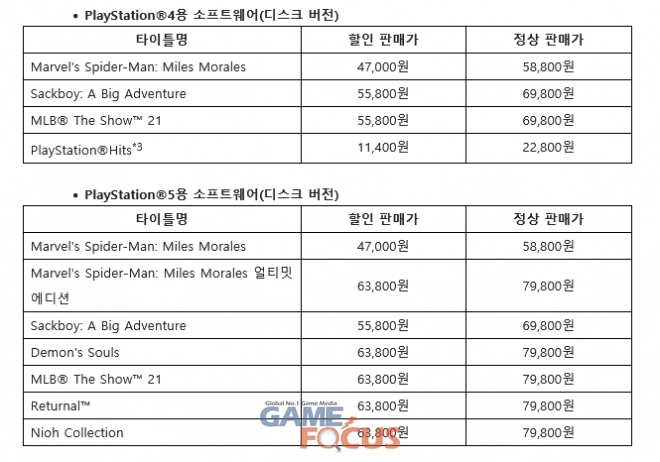 PlayStation® 주요 판매점에서는 2021년 9월 16일(목)부터 9월 26일(일)까지 다양한 PlayStation® 제품에 대해 최대 50% 할인을 제공한다.