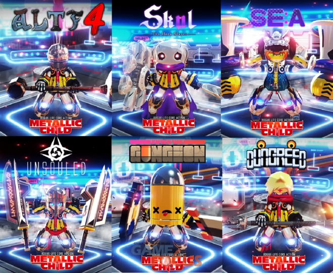 메탈릭 차일드는 스토리의 전달력을 위해 모든 대사를 전문 성우의 목소리로 더빙돼 몰입감을 높였으며, 한국 최초의 버추얼 크리에이터인 ‘세아’ 캐릭터를 포함해 국내 인디 게임 팬이라면 익숙한 ‘ALTF4’, ‘스컬’, ‘언소울드’, ‘던그리드’ 등의 게임 캐릭터들도 전용 무기와 함께 만나 볼 수 있다. 스토브 인디 외에도 스팀, 스위치 플랫폼을 통해 동시 론칭 됐다.