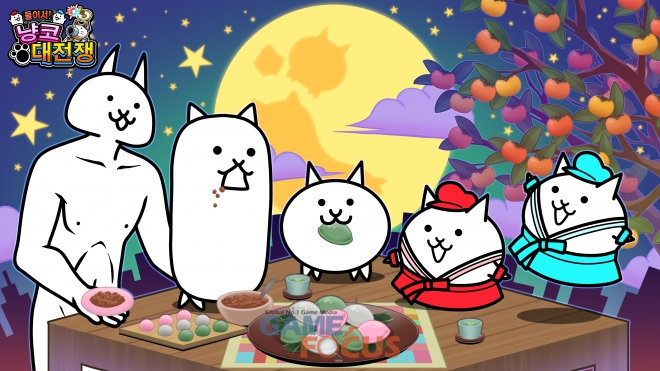 민족 대명절 추석을 맞이해 새롭게 제작된 징글귀염 냥코의 특별 일러스트를 공개했다. 보름달 아래에서 송편을 먹는 냥코들을 확인할 수 있다.