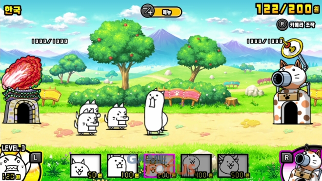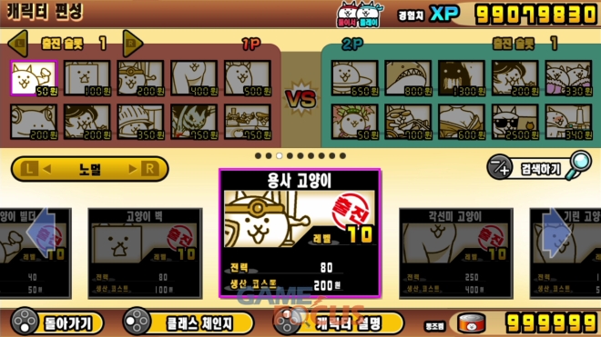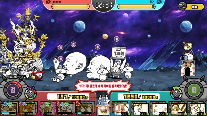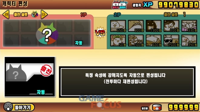 화면 왼쪽 아래의 '일 고양이'로 지갑 사이즈를 늘리면, 머니가 모이는 속도나 소지할 수 있는 머니의 양이 증가하여 배틀이 유리해진다. 전황을 보며 '일 고양이'의 지갑 사이즈도 적극적으로 늘려보자.
