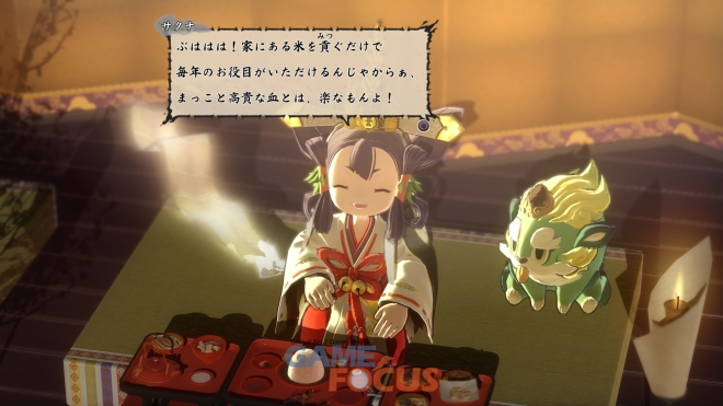 논갈기, 모내기, 수확 등의 하나하나의 과정을 정성껏 해내고 좋은 쌀을 수확할수록 풍양신 사쿠나가 강해진다.