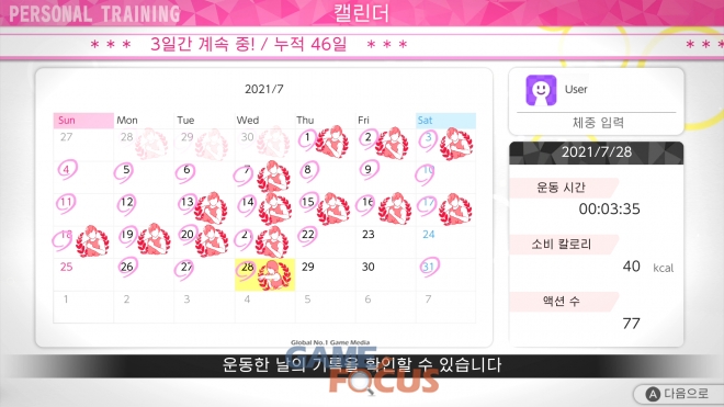 서로 다른 개성을 가진 네 명의 퍼스널 트레이너와 함께 운동하면서 때로는 엄격하고 때로는 다정하게, 플레이어가 운동을 계속할 수 있도록 도와주게 된다.
