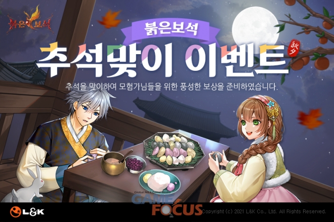 온라인 MMORPG ‘붉은보석’과 ‘로도스도 전기 온라인’을 개발 및 서비스하는 엘엔케이로직코리아(대표 남택원, 이하 엘엔케이)가 추석 연휴를 맞이해 붉은보석과 로도스도 전기 온라인에서 9월 15일(수)과 16일(목)에 각각 추석맞이 이벤트를 실시한다.