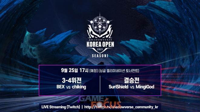 한편 사이게임즈 코리아(대표 와타나베 코우이치)가 후원하고 VSG TV가 주관하는 ‘섀도우버스 코리아 오픈 2021 시즌 1’의 결승전과 3-4위전은 25일 오후 5시부터 진행되며, 우승자에게는 1,500만 원의 상금과 ‘섀도우버스 월드 그랑프리 2021’ 초청권’을 획득하게 된다.