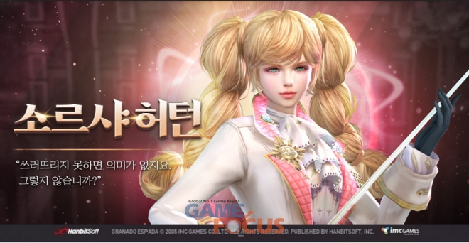 그라나도 에스파다에 따르면 딜러 포지션 신규 캐릭터인 '소르샤 허턴'을 출시했다. 소르샤 허턴은 힘·민첩·체력 능력치가 골고루 높게 설정돼 있고 기술·지능·감각 수치도 준수하며 무기는 레이피어를, 방어구는 레더아머와 코트를 사용한다.
