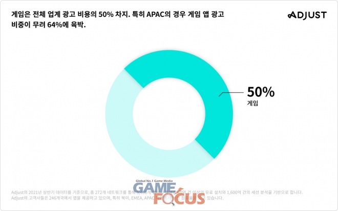 보고서에 따르면, 모바일 앱 광고 시장의 규모는 올해 상반기에만 650억 달러 (한화 약 76조 원)에 달했으며, 모바일 앱 시장의 성장을 이끄는 카테고리는 게임 앱이다. 앱의 사용자 확보를 위한 광고의 50%가 게임 앱에서 진행되었는데, 이는 전체 모바일 앱 다운로드의 약 20%를 해당한다. 특히, 진입 장벽이 높지 않고 비교적 난이도가 쉬운 하이퍼 캐주얼 게임 앱의 경우 전년 대비 43%의 성장을 기록했다. 게임 카테고리에서는 구글애즈와 페이스북이 가장 많이 활용되었고, 앱러빈과 유니티애즈(Unity Ads), 애플서치애드가 그 뒤를 이었다.