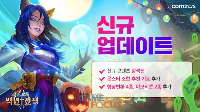 이번 업데이트에서는 할로윈 시즌 컨셉도 적용됐다. 메인 타이틀과 몬스터 소환 배경, 정보창 배경 등이 모두 할로윈의 으스스한 분위기를 물씬 풍기는 디자인으로 변경됐다. 또 '야차 화', '처녀귀신 소하', '악령 흐래스벨그', '호박머리 루센' 등 인기 몬스터들에 할로윈 이미지를 적용한 형상 변환 4종도 선보였다.