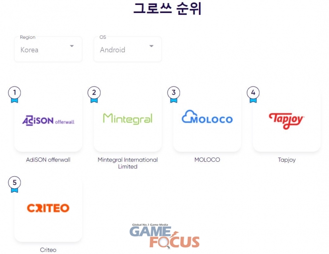 애디슨 오퍼월에 뒤를 이어 순위권에 오른 애드 네트워크로는 2위 민티그럴(Mintegral International Limited), 3위 몰로코(MOLOCO), 4위 탭조이(Tapjoy), 5위 크리테오(Criteo)로 집계됐다. 한국 시장에서 가장 빠르게 성장한 5개 기업 중 4곳이 글로벌 애드 네트워크로, 해외 매체들의 국내 성장세를 확인할 수 있다. 미국 캘리포니아에 본사를 둔 몰로코의 경우, 한국인이 창립한 글로벌 애드 네트워크로 국내를 비롯한 세계 여러 지역의 그로쓰 인덱스에 진입하며 성장세를 보여줬다.