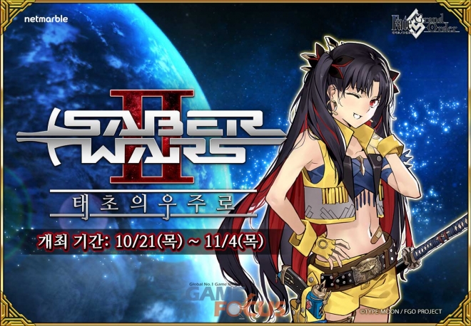 넷마블(대표 권영식, 이승원)은 모바일 RPG '페이트/그랜드 오더'에 '세이버워즈2~태초의 우주로~' 이벤트를 11월 4일까지 진행한다고 21일 밝혔다.