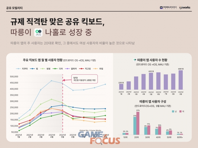 아이지에이웍스가 자사의 데이터 분석 솔루션 ‘모바일인덱스’를 통해 <모바일 앱 시장 동향 분석> 리포트를 발표했다. 분석 기간은 2020년 9월 1일부터 2021년 9월 30일까지로, 일평균 4000만 모바일 기기의 20억건 데이터(안드로이드, iOS 통합 데이터 기준)를 AI 알고리즘에 기반하여 분석했다.