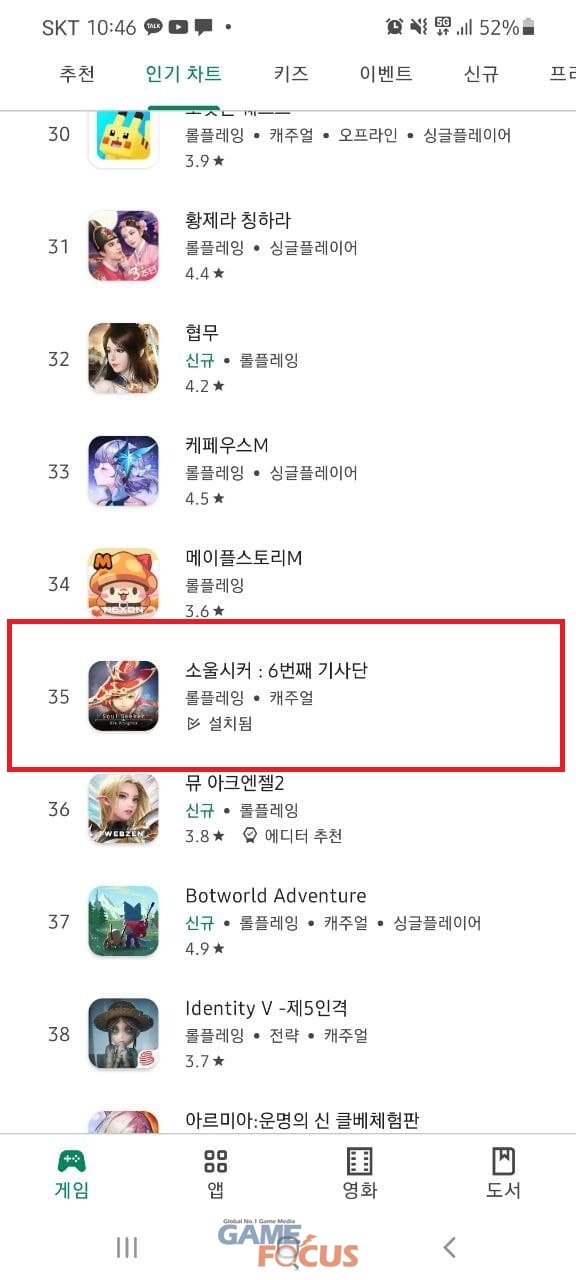 '소울시커:6번째 기사단'의 구글 플레이 인기 순위는 RPG 카테고리 기준으로 10월 초 100위권 밖이었다가 최고 35위를 기록한 이후 현재까지도 30위권을 유지하는 등 장수 게임으로는 드물게 '순위 역주행'이라는 좋은 성과를 거두고 있다.