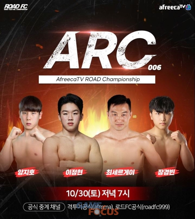 아프리카TV는 10월 30일 저녁 7시 아프리카TV와 로드FC가 공동으로 제작하는 종합격투기 대회 'ARC(AfreecaTV Road Championship, 이하 ARC) 006' 대회를 잠실 롯데월드 아프리카 콜로세움에서 개최한다고 밝혔다. 6회째를 맞이한 ARC는 현재까지 누적 시청자 수 40만 명, 경기 다시 보기 및 하이라이트 등의 VOD 조회 수는 210만 회를 기록하며 큰 인기를 끌고 있다.