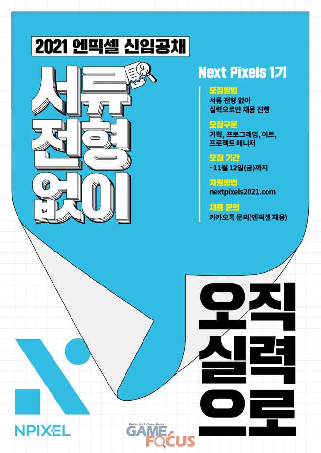 엔픽셀 박세헌 경영지원 총괄은 “공정한 환경에서 역량과 가능성 있는 인재를 발굴하고자 별도 서류 전형이 없는 채용 방식을 진행할 계획”이라며 “엔픽셀의 사명에 담긴 무한한(n) 도전에 함께할 지원자 여러분들의 많은 참여를 바란다”고 전했다.