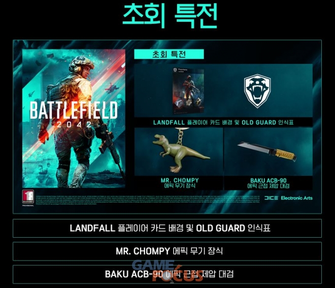 '배틀필드 2042' 패키지 제품 예약구매 시 다음과 같은 예약특전 및 초회특전이 제공될 예정이다.