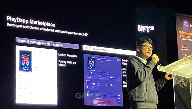 미국 뉴욕 현지시간 4일 오후 팔라디움 타임스 스퀘어에서 열린 엑시인피니티의 강연에 이어 'Interoperability in numbers'를 주제로 플레이댑의 정상원 사업총괄이 나서 '블록체인을 활용한 게임 아이템의 상호 운용성과 P2E 모델이 게임에 미치는 영향'에 대해 실제 서비스 경험을 통한 인사이트를 공유하는 시간을 가졌다.
