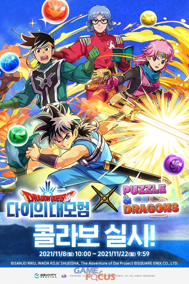겅호 온라인 엔터테인먼트에서 개발하고 그라비티의 자회사 그라비티 네오싸이언이 서비스 중인 모바일 퍼즐게임 ‘퍼즐앤드래곤’이 인기 애니메이션 ‘드래곤 퀘스트 : 다이의 대모험’과 콜라보레이션을 진행한다고 8일 밝혔다.