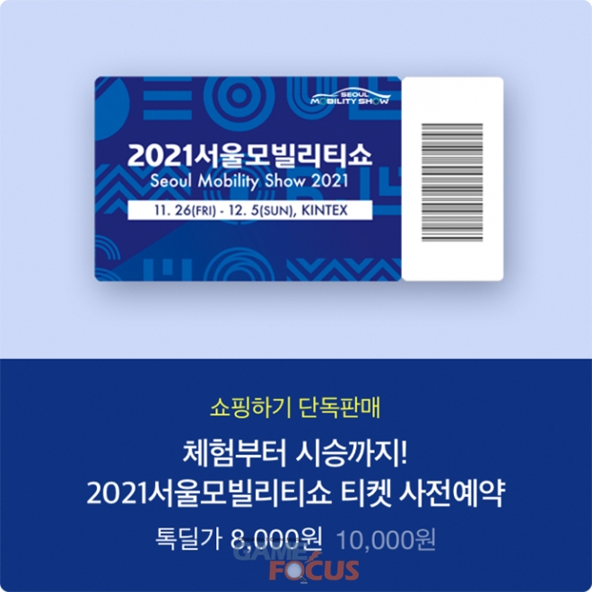 2021서울모빌리티쇼 입장권의 정상가는 성인 1만원, 초중고생 및 장애인, 유공자, 경로자 7000원으로, 오는 11월 25일(목)까지 진행되는 사전 판매 기간에 입장권 구매 시 2000원 할인 혜택이 제공된다.
