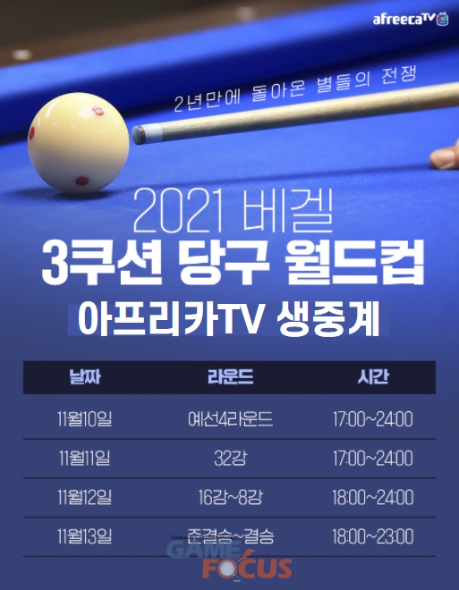 아프리카TV가 약 2년 만에 돌아온 세계 3쿠션 월드컵 대회를 생중계한다.