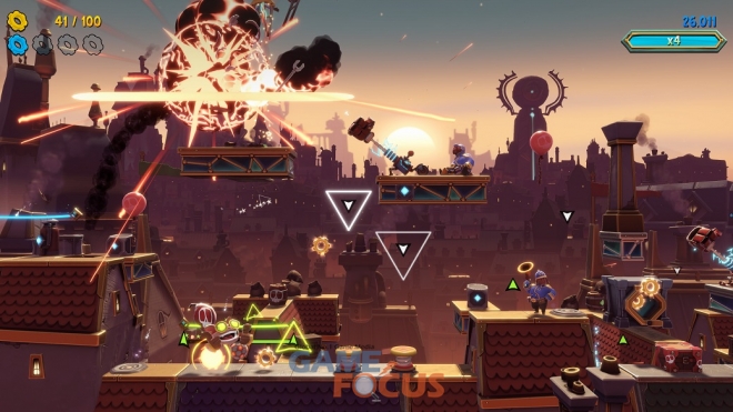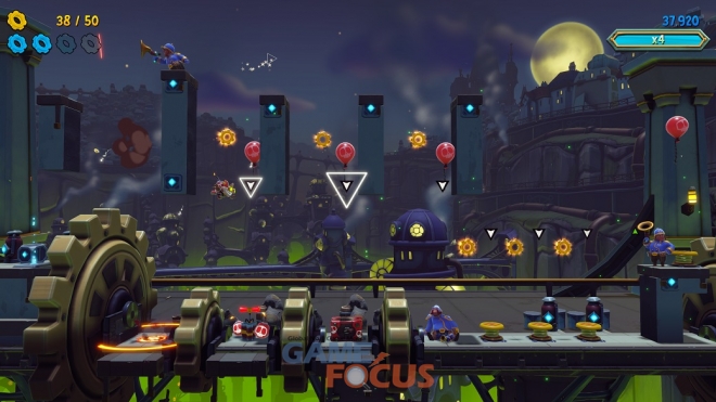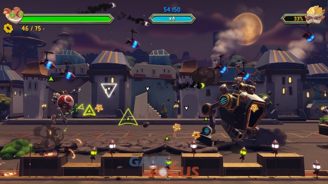 필트오버를 아수라장으로 만들기 위해 경쾌한 음악의 박자에 맞춰 폭탄 점프와 공격을 하며 장애물을 피하고 적을 무장 해제 시키는 등 스릴 넘치고 폭발적인 연쇄 반응을 일으키는 내용의 게임이다.