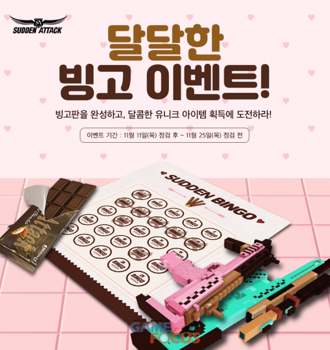 이와 함께 11월 25일까지 '달달한 빙고 이벤트'를 실시한다. 이 기간 게임 접속, 플레이, 승리, 어시스트 등 각종 미션을 달성하면 빙고 티켓을 제공한다. 획득한 티켓으로 최대 9번의 빙고를 달성할 수 있으며 빙고를 완성한 단계에 따라 30만 통합 경험치, 영구제 밀봉, 'TRG21(IS) 초코쿠키(영구제)', 'MP7 초코쿠키(영구제)' 등을 지급한다. 각 빙고 줄 완성 시에는 'AK47(I) 초코쿠키', 'D.Eagle(S) 초코쿠키', '봉봉 캐릭터 세트' 등 기간제 추가 보상을 지급한다.