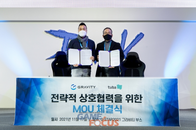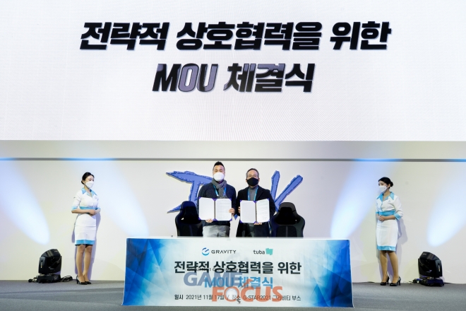 그라비티가 '지스타 2021' 첫날인 11월 17일 미디어데이에서 투바앤과 게임 콘텐츠 사업 협력을 위한 업무 협약(MOU)을 체결했다.