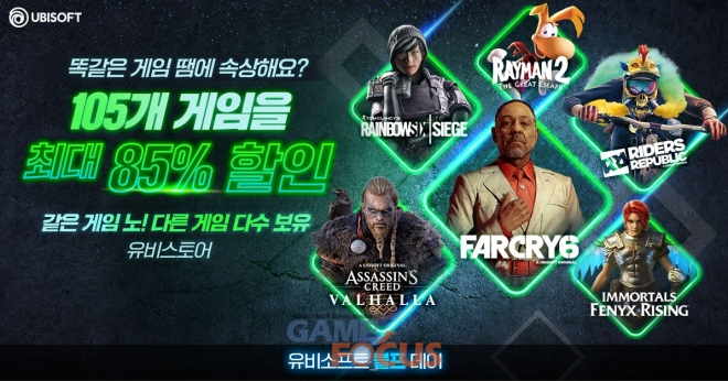 또한 유비소프트는 액션 어드밴처 게임 '레이맨 2'을 비롯해 오픈월드 액션 어드벤처 게임 '임모탈 피닉스 라이징', 전술 멀티플레이어 FPS 게임 '레인보우식스 시즈' 등 총 105개 게임을 대상으로 최대 85% 할인된 가격으로 판매한다.