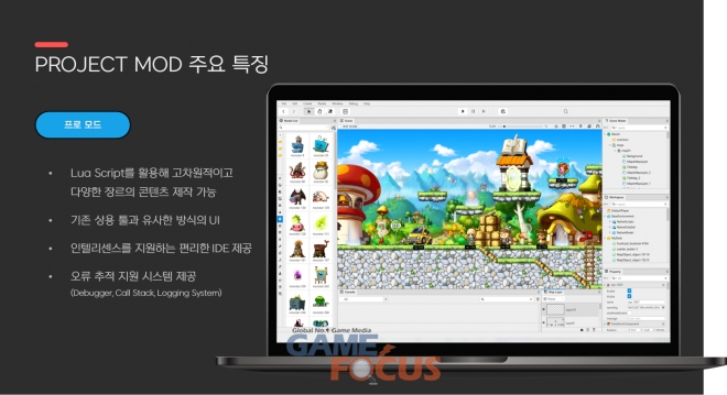 참가자는 두 가지 버전의 '프로젝트 MOD'를 활용할 수 있으며, PC에서 루아 스크립트를 활용하고 기존 사용 툴과 유사한 UI를 지닌 'PRO 모드'와 모바일 환경에서 제작 템플릿이 제공되고 쉽게 오브젝트를 나열할 수 있는 '꾸미기 모드'를 사용할 수 있다.