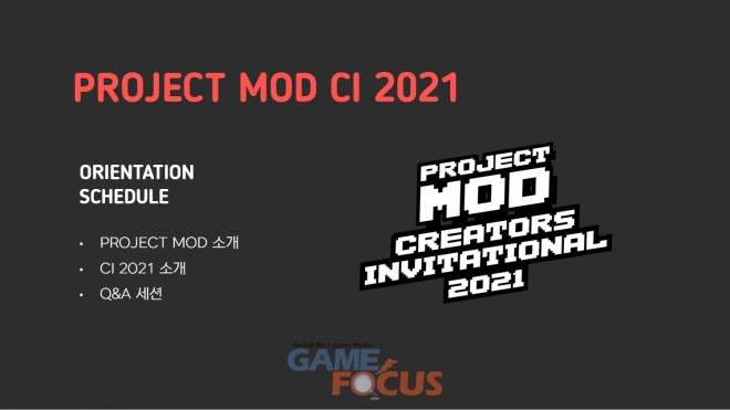 지난 17일, 본격적인 공모전에 앞서 신규개발본부 김대훤 부사장, '프로젝트 MOD' 신민석 디렉터, 오세형 사업실장이 '프로젝트 MOD'와 'CI 2021'를 소개하고, 참가자들의 질문에 실시간으로 답하는 오리엔테이션 행사를 개최했다.