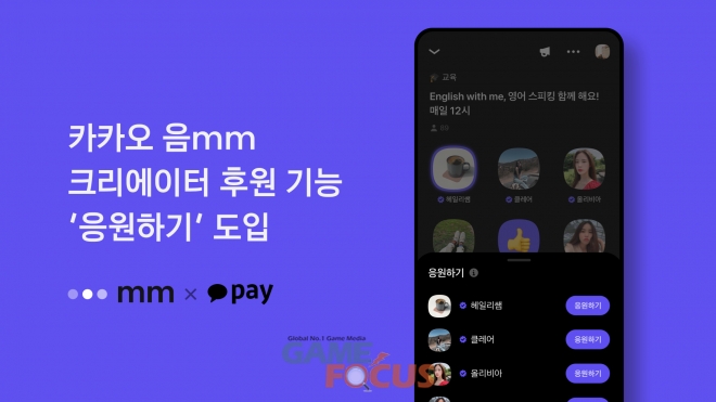 카카오 관계자는 “'크리에이터 이코노미(창작경제)'가 주목받으며 오디오 크리에이터 및 콘텐츠의 영향력과 중요성이 확대되어 이들의 수익화와 성장을 돕는 응원하기 기능을 도입하게 된 것”이라며 “참여자들의 후원을 기반으로 더 많은 오디오 크리에이터들이 음mm에서 활동하고, 소셜 오디오 플랫폼 생태계와 동반 성장할 수 있는 환경을 조성하고자 노력해 갈 것”이라고 말했다.