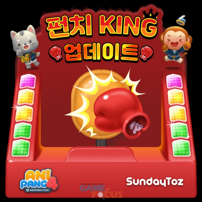 선데이토즈(대표 김정섭)는 자사 인기 모바일 게임 '애니팡4'에 신규 이벤트 '펀치킹'을 처음 선보인다고 22일 밝혔다.