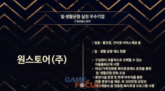 이재환 원스토어 대표는 "직원들의 일과 생활 균형 확보를 위한 노력이 원스토어 성장의 밑거름이 됐다”며, "앞으로도 구성원들이 일·생활 균형을 보장받으면서 일할 수 있도록 최선의 지원을 다할 것"이라고 전했다.