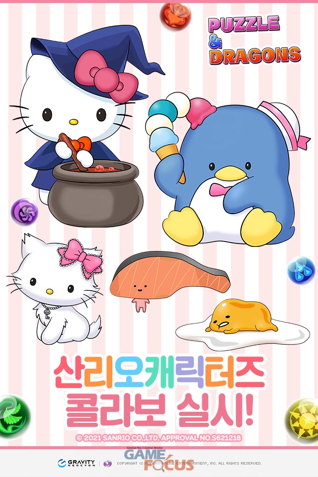 겅호 온라인 엔터테인먼트에서 개발하고 그라비티 네오싸이언이 서비스 중인 모바일 퍼즐게임 ‘퍼즐앤드래곤’에서 11월 29일부터 ‘산리오캐릭터즈’와 콜라보레이션을 진행한다.