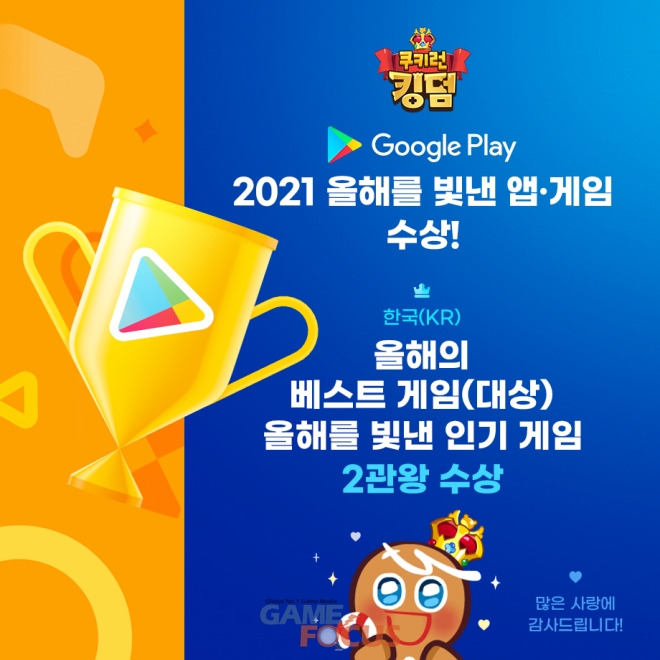 쿠키런: 킹덤은 이번 구글플레이의 어워즈 뿐만 아니라, 지난 달 열린 '2021 대한민국 게임대상'에서도 최우수상 및 기술창작상 캐릭터 부문을 수상한 바 있다.